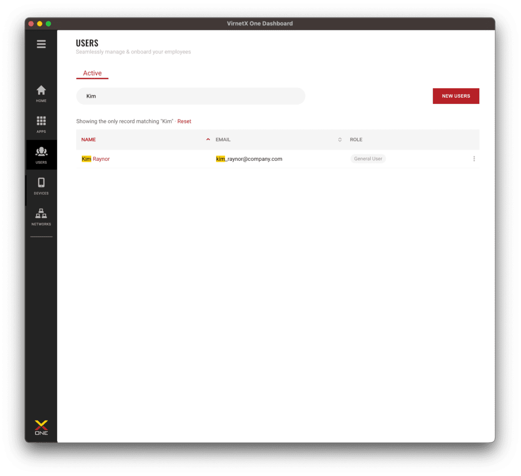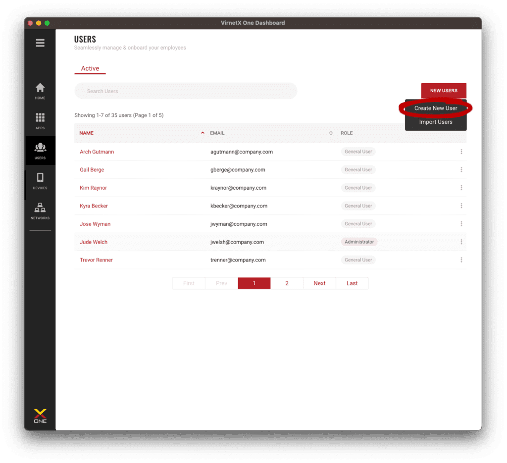 With the bulk user import feature, IT administrators can import up to 10,000 users at once. They can then easily assign all or subsets of users to War Room or individual applications secured by VirnetX Matrix.