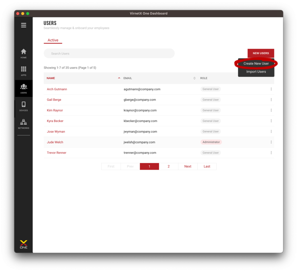 - Administrative roles will have access to the VirnetX One Admin Console