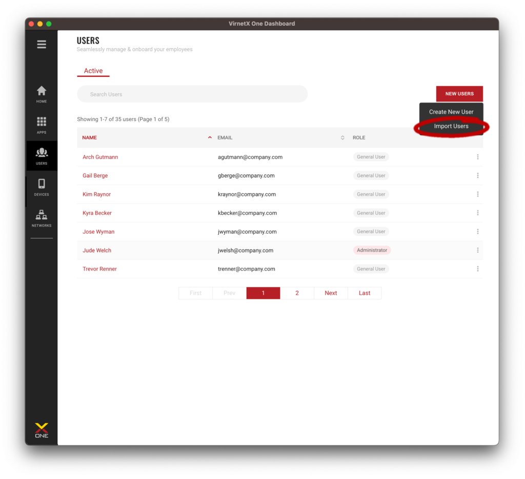 With the bulk user import feature, IT administrators can import up to 10,000 users at once. They can then easily assign all or subsets of users to War Room or individual applications secured by VirnetX Matrix.