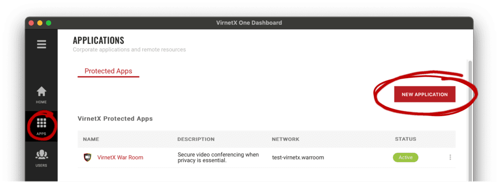 Here are the steps for protecting your application with VirnetX Matrix: