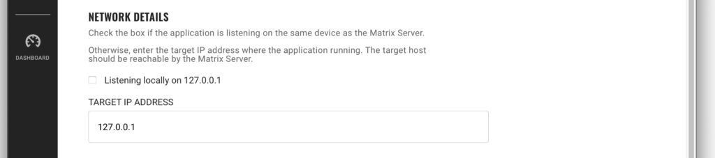 If the application is not running locally, you will need to tell the VirnetX Matrix Server the IPv4 address of the application.