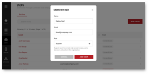 In the CREATE NEW USER window add a Name an Email and choose whether the user will be a General User or an Administrator.