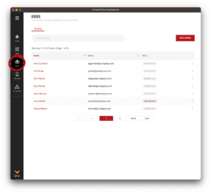 3. Click the USERS button to display the USERS Screen. This views shows all the users within your organization. If an organization has just been onboarded organization owner is the only user within that organization. Organization owner will either need to add users. For more information on adding and managing users please see ‘Managing Users’.