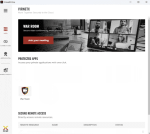 Clicking the DASHBOARD Button will return you to the DASHBOARD Screen that is shown as the default when first launching VirnetX One.