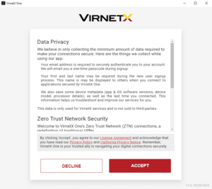 Accept the Virnetx EULA Agreement. Note: Make sure to read before acceptance